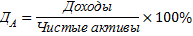 Очень важным показателем, оценивающим качество активов, является их доходность, которая рассчитывается по формуле: