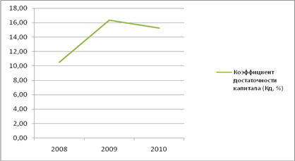Исходя из данных таблицы, можно сделать вывод о том, что показатель достаточности капитала в целом имеет положительную динамику. Для этого изобразим данные показателя графически (рисунок 14).