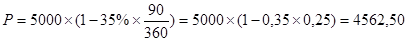 Дисконтный вексель на сумму 5000 рублей со сроком платежа 90 дней. Банковская ставка 35% годовых. Рассчитать по какой цене банк должен разместить данный вексель.