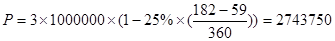 Произвести расчет доходности операции по векселям. Компания приобрела три банковских векселя 1 марта 2009 г. номиналом каждого векселя 1 млн. рублей. Процентный доход, гарантируемый банком, 25% годовых. Векселя были предъявлены компанией к платежу 1 июля 2009 г.