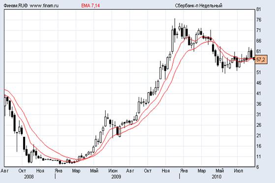 Динамика курса обыкновенных акций Сбербанка РФ в 2009-2010гг.