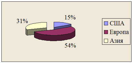 Рис.2.1. Региональная структура иностранных контрагентов по операциям с документарными аккредитивами за пять месяцев 2002г.