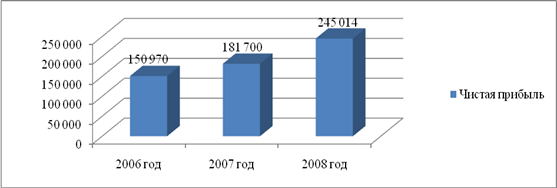 Рисунок 11 – Динамика чистой прибыли Пушкинского отделения № 2009 Сбербанка России в 2006 – 2008 годах