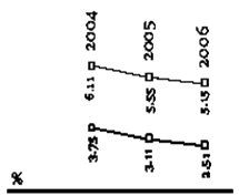 Согласно данным рисунков, показатель чистой процентной маржи после формирования резервов на обесценение процентных активов к средним процентным активам несколько снизился — с 3,1 % в 2005 году до 2,5 %в 2006 году, Такое снижение обусловлено главным образом ростом средней стоимости процентных обязательств с 6,71 % за 2005 год до 6,87 %за 2006 год.