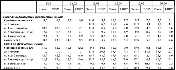 По операциям с физическими лицами (депозитные и кредитные операции) в среднем за 2001-2006 гг. разрыв по инструментам в тенге составил 10,5%, в СКВ -9,6%. По небанковским юридическим лицам - 9,8% в тенге и 7,1% в СКВ соответственно.