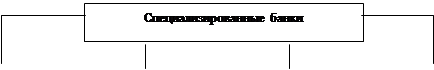 Деятельность специализированных банков ориентирована на предоставление, в основном, одного – двух видов услуг для большинства своих клиентов. Все специализированные банки можно классифицировать на основании критерия специализации (рис.2).
