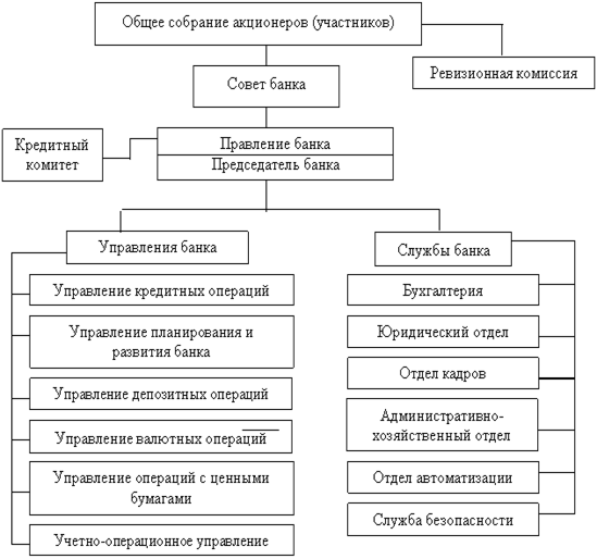 Организационная структура банка включает функциональные подразделения и службы банка, каждая из которых имеет определенные права и обязанности.