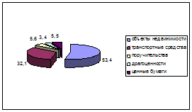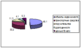 Рис. 2.2 Доли различных видов залогов в общей залоговой стоимости ипотечных кредитов в 2005 году, %