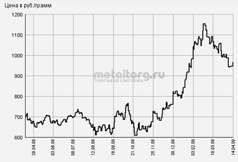 Золото Динамика цен с 29.04.2008 по 14.04.2009