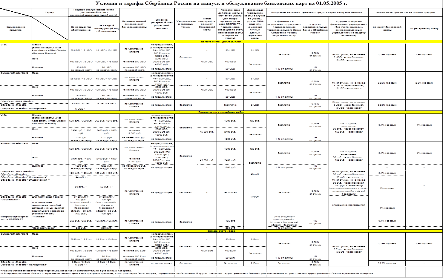 - выдачи наличных денежных средств в других филиалах Сбербанка России, обслуживаемых территориальным банком, в котором карта была выдана |
