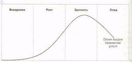 Жизненный цикл банковской услуги — это динамика конкурентоспособного пребывания банковской услуги на рынке, является конкретизацией жизненного цикла товара. Концепция жизненного цикла позволяет определить элементы маркетинга с момента принятия решения о предоставлении конкретной услуги, ее поступления на определенный рынок и до момента ее снятия с рынка.