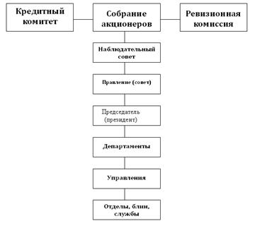 Приведем упрощенную структуру коммерческого банка (схема 1).