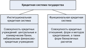 Понятие институциональной кредитной системы связано с функционированием кредитных учреждений, контролирующих их органов и различных организаций, таких как финансовые союзы, ассоциации, холдинги и др., связанных между собой определенными отношениями (корреспондентскими, конкурентными, расчетно-платежными и т.д.).