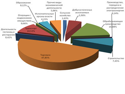 Рисунок 3 – Структура кредитного портфеля по кредитам, предоставленным юридическим лицам, по видам экономической деятельности клиентов по состоянию на 01.01.2009г.