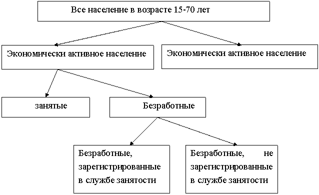 - экономически неактивное население - лица, которые не могут быть отнесены ни к «занятым», ни к «безработным» (ученики, студенты, пенсионеры по инвалидности и на льготных условиях, занятые в домашнем хозяйстве, лица, разуверившиеся найти работу и т.п.).