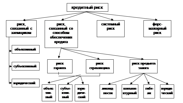 1. Риск, связанный с заемщиком, гарантом, страховщиком 1.1. Объективный (финансовых возможностей) 1.2. Субъективный (репутации) 1.3. Юридический |