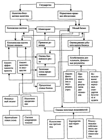 Можно предложить следующую схему комплексной организации системы кредитования малого бизнеса при участии государственных структур, банковской системы и региональных органов управления (рисунок 12).