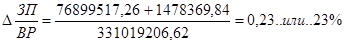 1. «Изменение отношения затрат на производство к выручке от реализации» вычисляется по следующей формуле: