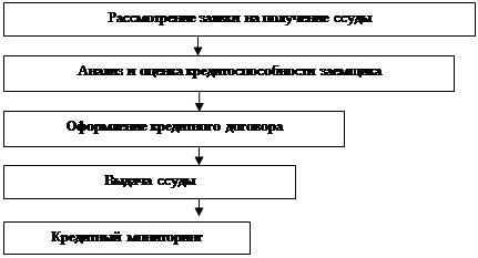 Процесс предоставления банковской ссуды называется кредитным процессом (процессом кредитования). Процесс кредитования предприятий коммерческим банком, а также в данном случае КО №8599/011 СБ России (ОАО) включает пять основных этапов.