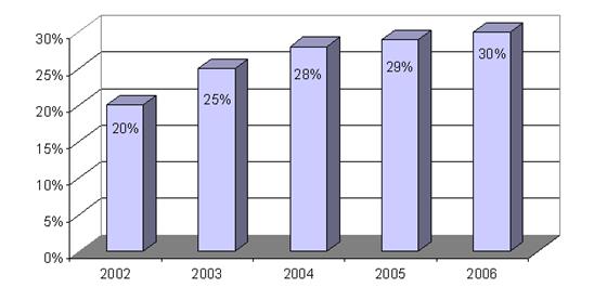 С учетом существующей в настоящее время Республике Казахстан нормативно - правовой базы лизинга и ее дальнейшего развития предусматривается увеличение доли лизинга к 2006г. в общем объеме инвестиций до 30% со следующей разбивкой по годам: 2002г.-20%, 2003г.-25%, 2004г.- 28%, 2005г.-29%, 2006г.-30%.