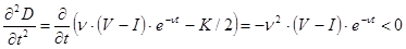 , покажем, что эта функция является вогнутой (выпуклой вверх), для чего исследуем знак второй производной функции