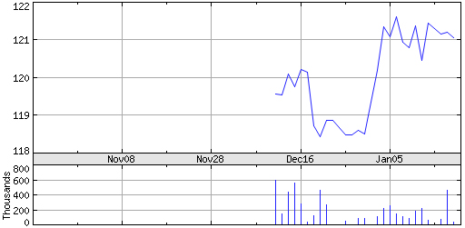 Динамика акций Euro Currency Trust, 12 декабря 2005 г. – 19 января 2006 г.