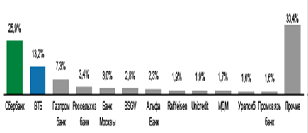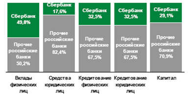 Активы Сбербанка составляют четверть банковской системы страны, а доля в банковском капитале находится на уровне 30%.