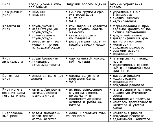 Синтетические методы хеджирования предполагают использование внебалансовых видов деятельности: форвардные соглашения о будущей процентной ставке, финансовые фьючерсы, опционы и свопы. Новые подходы к ограничению банковских рисков открывают такие инновации, как: