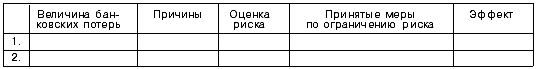 Полезным инструментом для принятия управленческих решений в области банковских рисков является ретроспективная Матрица примеров оценки и использованных приемов минимизации рисков, используемая многими зарубежными кредитными организациями. Такая матрица составляется на основе банковской практики решения кризисных ситуаций и может иметь следующую форму (см. табл. 3):