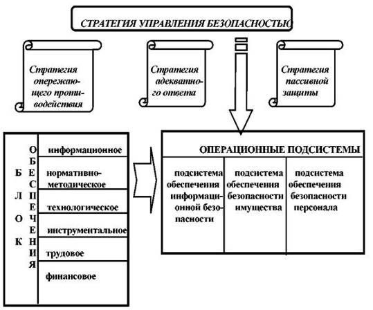 Стратегия обеспечения безопасности – совокупность долгосрочных целей и управленческих подходов, реализация которых обеспечивает защиту кредитно-финансовой организации от потенциальных угроз разглашения коммерческой и банковской тайны, а также нанесения ей любых других форм ущерба имущественного и неимущественного характера.