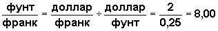Обменный курс валют фиксировался через трехсторонний арбитраж. Например, если паритетная стоимость английского фунта составляла 2,00 доллара, а французского франка - 0,25 доллара, то обменный курс между фунтом и франком трехсторонний арбитраж определял как: