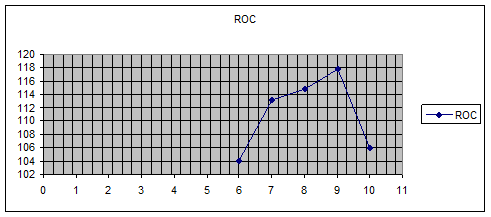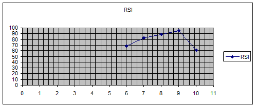 Вывод: у нас в 6,7 день ниже 100 - снижение цены, предпочтительнее продажа 8,9 - повышение цены, покупка, а в 10 день - продажа так как ниже 100%