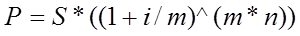 3.5) Ссуда, размером S руб. и предназначена сроком на Т лет. Проценты сложные, ставка i% годовых. Проценты начисляются m раз в году. Вычислить наращиваемую сумму?