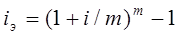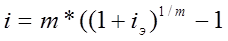 3.6) Вычислить эффективную ставку процента если банк начисляет проценты m раз в году, исходя из номинальной ставки i% годовых