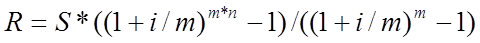 3.10) В течении Тлет на расчетный счет в конце каждого года поступает по S руб., на которые m раз в году начисляются проценты по сложной годовой ставке i%. Определить сумму на расчетном счете к концу указанного периода?