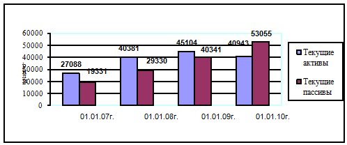 Как видно из приведенных расчетов, на протяжении анализируемого периода филиал поддерживал положительный уровень текущей ликвидности. Ликвидные активы, находящиеся в распоряжении банка в периоде до одного месяца превышали обязательства банка в этом же периоде. Но к началу 2010 году состояние текущей ликвидности ухудшилось, недостаток ликвидности составил 12112 млн. руб. Опережающий рост текущих пассивов над общим снижением текущих активов и привел к их несбалансированности (рисунок 2.2).