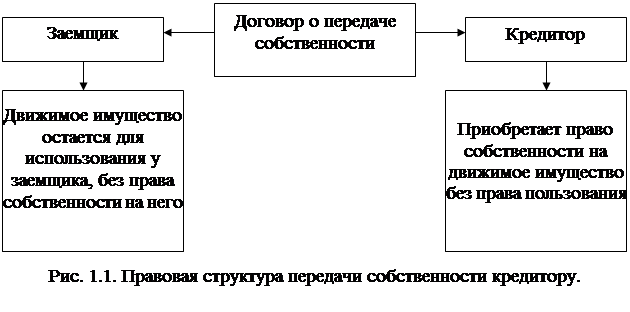 Для того чтобы движимое имущество могло быть в пользовании заемщика и в то же время служить гарантией возврата кредита, используется передача права собственности на него кредитору в обеспечении имеющегося долга.