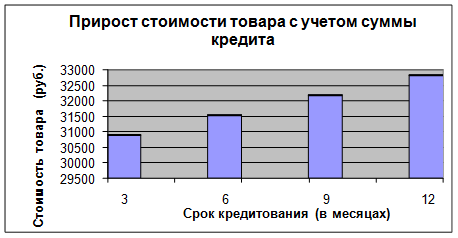 Рис. 2.12. Прирост стоимости товара с учетом суммы кредита