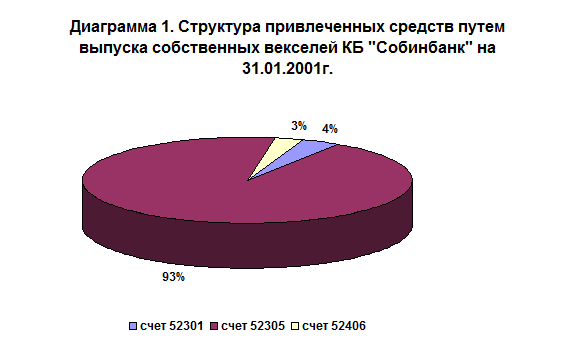 Остаток размещенных векселей КБ «Собинбанк» по состоянию на 31.01.2001г. составил 42 821 тыс. руб., причем векселя размещены на разные сроки:
