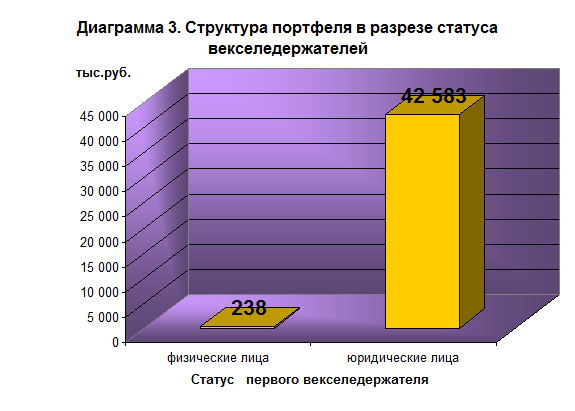 Основная часть – 42583 тыс. руб. или 99% от имеющегося на 31.01.2001г. остатка, размещена среди юридических лиц, которые, возможно, использовали векселя как средство платежа во взаимозачетных схемах, замыкающихся на банке.