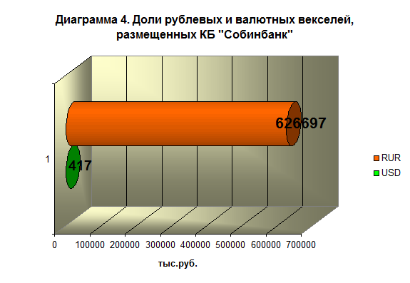 Таким образом, за 13 месяцев рассматриваемого периода банком выплачен дисконт по размещенным векселям в сумме 822 тыс. руб., или 0,13% от суммы привлеченных средств. Приведенные данные наглядно показывают, что получение дохода от размещения векселей не являлось основной целью КБ «Собинбанк».