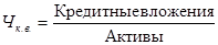 Анализ кредитной деятельности банка целесообразно начинать с определения места, которое занимают кредитные операции в общем объеме активов банка, то есть необходимо дать общую оценку масштабов кредитной деятельности. Для этого рассчитывается коэффициент части кредитов в общих активах банка по формуле: