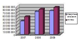 Обозначим графически показатели кредитных вложений и общих активов ПАО КБ «ПриватБанк» в 2007-2009 гг. на рисунке 2.1.