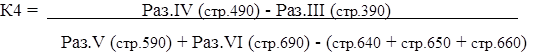 К3 = (Раз. II (стр. 290))/(Раз.VI (стр.690) – (стр.640 + стр.650 + стр.660)) (5)