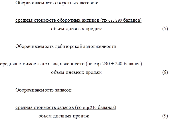 Аналогично при необходимости могут быть рассчитаны показатели оборачиваемости других элементов оборотных активов (готовой продукции незавершенного производства, сырья и материалов) и кредиторской задолженности.