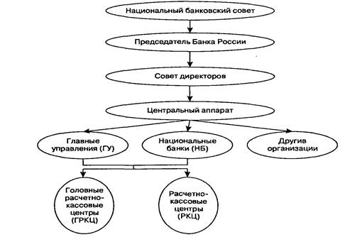 Так как деятельность центрального банка носит общенациональный характер, звенья его структуры должны руководствоваться указаниями одного главного центра, обладающего соответствующими полномочиями. Таким центром – высшим органом Банка России – выступает Совет директоров. Он определяет основные направления деятельности ЦБ, руководит и управляет всей его системой.