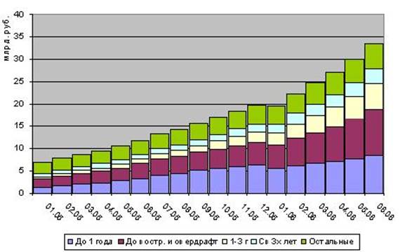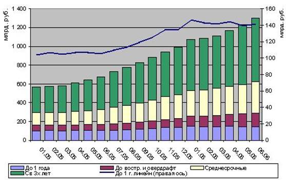 Наиболее нехарактерной для этого рынка тенденцией является снижение объемов кредитования на сроки до 1 года на 4% с начала 2006 г.