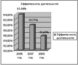 Эффективность деятельности банка в течение трех (с 2006 по 2008 включительно) лет менялась в довольно широких рамках. Отдача уставного капитала уменьшалась в течение трех лет, с 2006 года по 2008 год снизилась на 8,46%. Чтобы нагляднее представить произошедшие изменения представим их в виде диаграммы 1