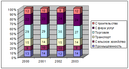 Рис. 12. Распределение невозвращенных кредитов по отраслям коммерческой деятельности, в %