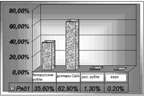 Рисунок П.4.1 Структура кредитного портфеля филиала 633 АСБ «Беларусбанк» в разрезе валют на 01.01.2006.